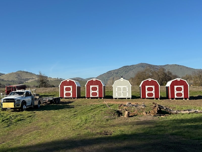 This project features five Barn Tall structures located in Squaw Valley, California. Four of the units share an identical configuration, each equipped with 4-foot Dutch-style doors accented by black hardware. The fifth Barn Tall stands out with its distinctive gray exterior and is fitted with 6-foot double doors, also complemented by matching black hardware.